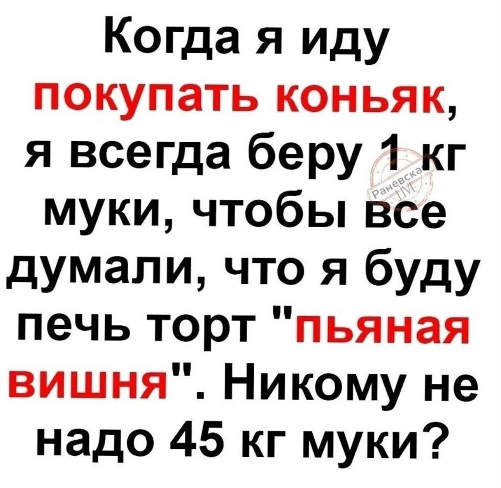 Выхожу из магазина и на последней секунде вспоминаю про муку, возвращаюсь с мукой и сообщаю продавцу, типа так то я за мукой шла, а водка просто на глаза попалась, поржали вместе:)))